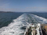 乗るや否や出港。乗客はまばらで、デッキを独り占めして島々を眺めたり広島焼を食ったり。